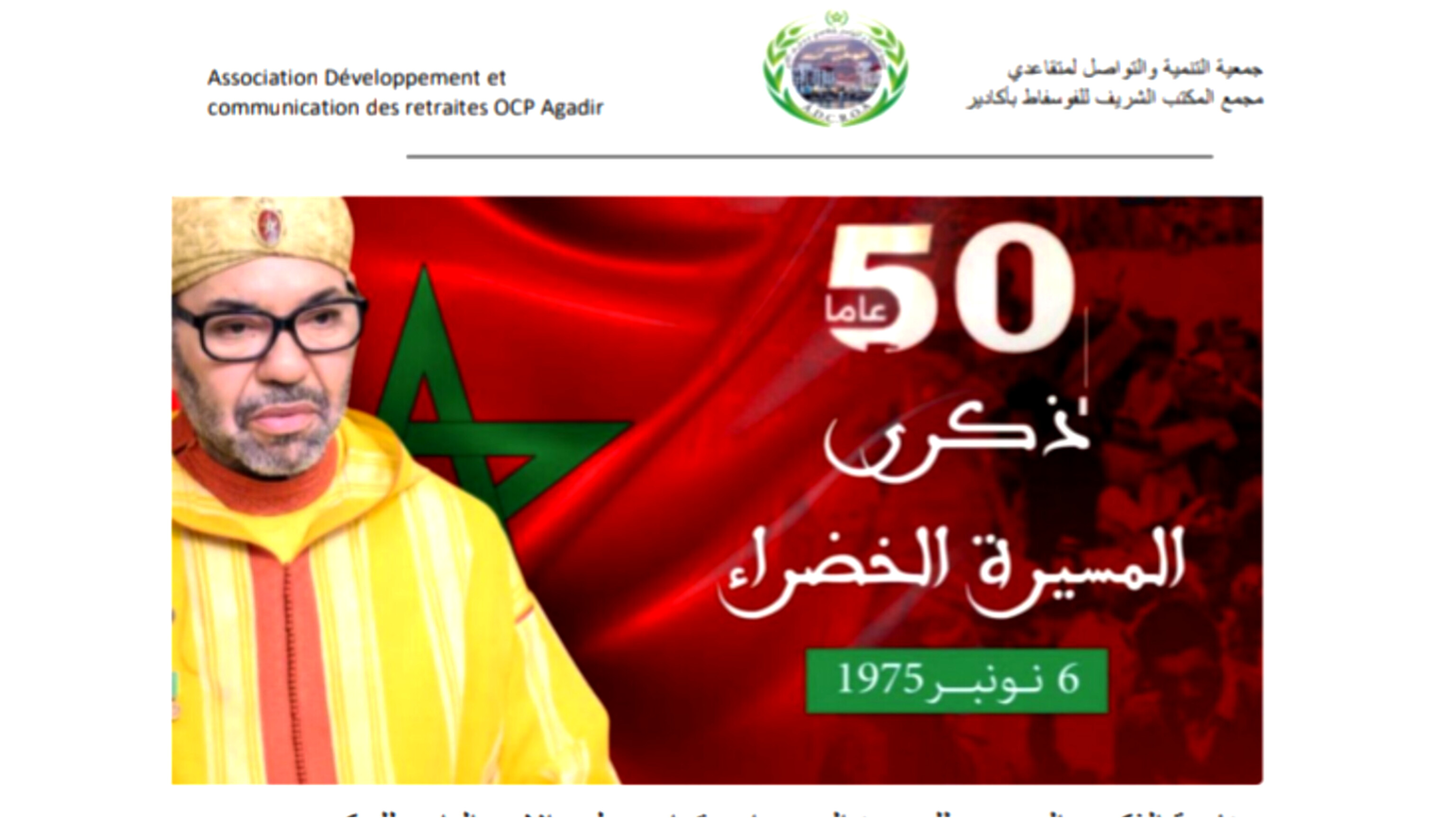 جمعية التنمية والتواصل لمتقاعدي المجمع الشريف للفوسفاط تحتفي بالذكرى الخمسين للمسيرة الخضراء