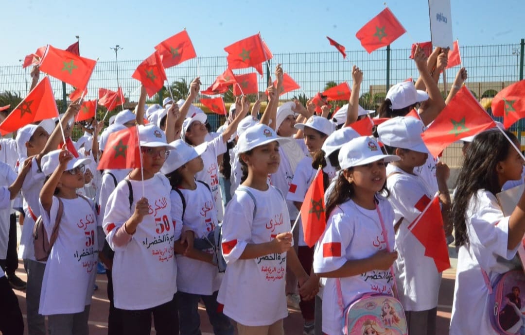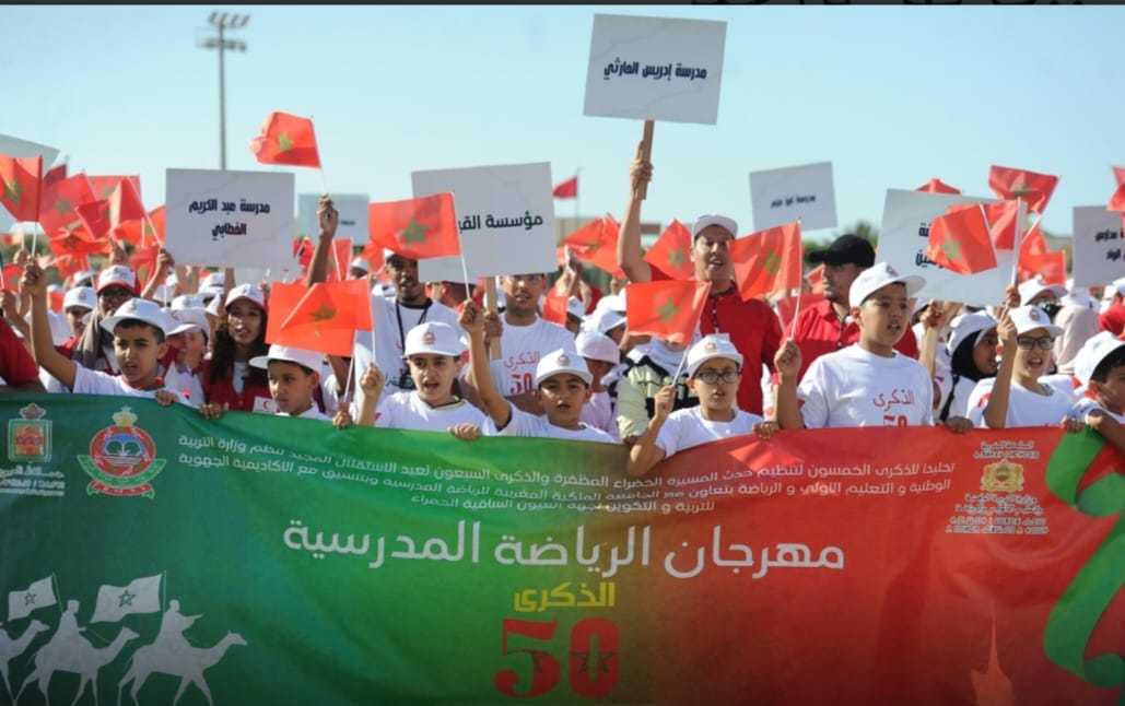 في جو مفعم بحب الوطن وغرس قيم المواطنة انطلق مهرجان الرياضة المدرسية بمشاركة حوالي 1500 تلميذ(ة)، في إطار احتفالات الشعب المغربي بالذكرى الخمسين للمسيرة الخضراء المظفرة، كان مهرجان الرياضة المدرسية الذي نظمته وزارة التربية الوطنية والتعليم الأولي والرياضة بتعاون مع الجامعة الملكية المغربية للرياضة المدرسية، وبتنسيق مع الأكاديمية الجهوية للتربية والتكوين لجهة العيون الساقية الحمراء يوم الخميس 6 نونبر 2025 فرصة لإسعاد تلميذات وتلاميذ المؤسسات التعليمية الابتدائية بألعاب رياضية وأنشطة ترفيهية وأناشيد وأغاني وطنية…