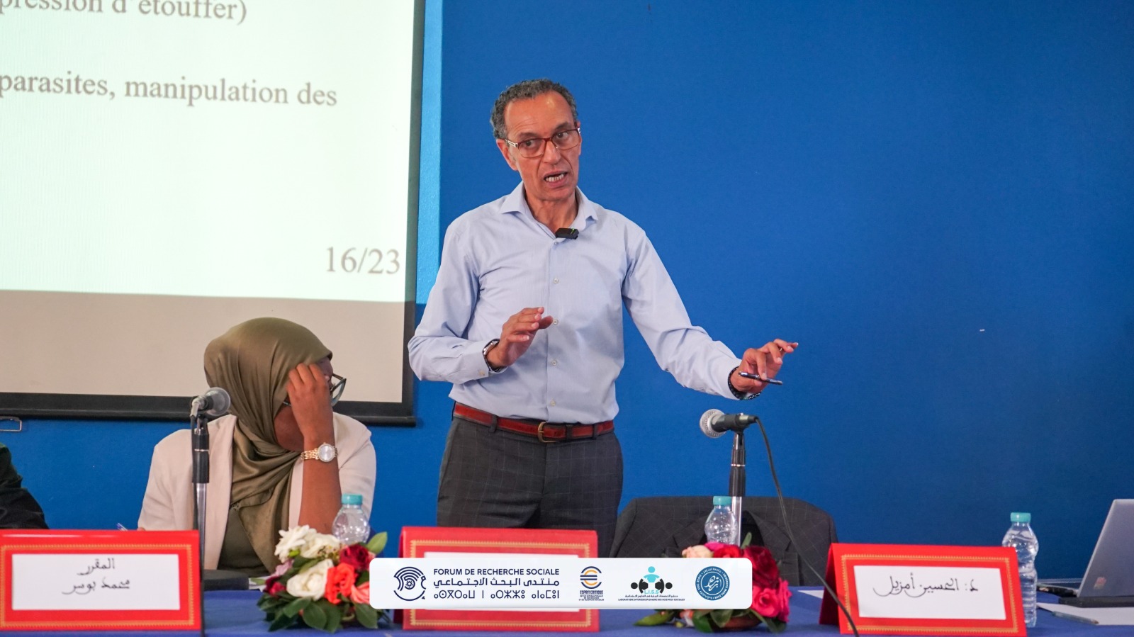 ​وقد شكلت مداخلة الدكتور الحسين أمزيل، الباحث في علوم التواصل وعضو المختبر البين-تخصصي للعلوم الاجتماعية (LISS)، حجر الزاوية في هذا اللقاء، حيث نجح بامتياز في تحويل القاعة 46 إلى فضاء تفاعلي .
