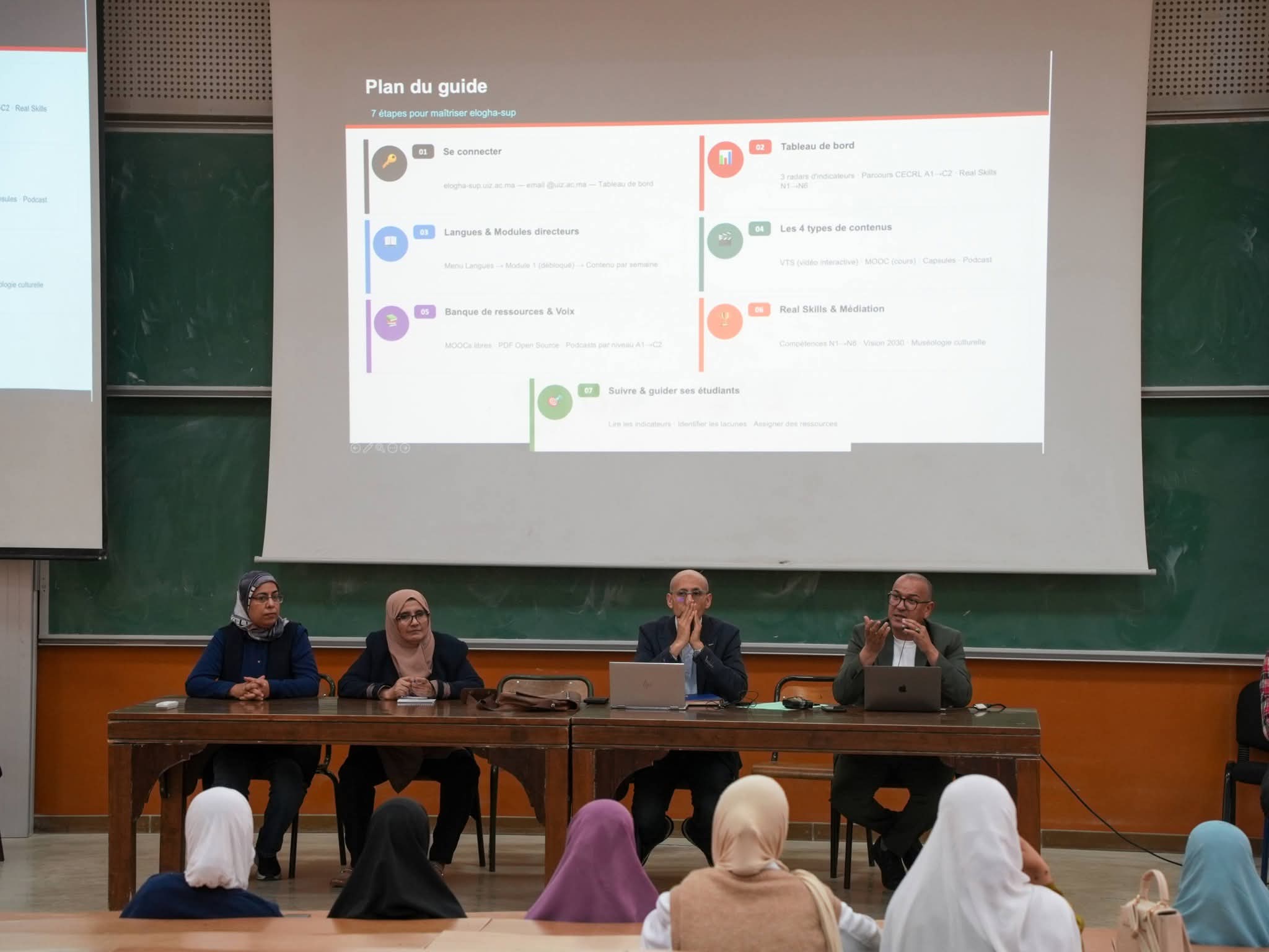 Cette initiative s’inscrit dans le cadre du déploiement progressif de cette plateforme numérique innovante, visant à renforcer les compétences linguistiques des étudiants et à accompagner leur parcours académique et professionnel. La rencontre a été marquée par la présence du Président de l’Université Ibn Zohr, du Vice-Président de l’Université, ainsi que du Doyen de la Faculté des Sciences, aux côtés d’un grand nombre d’étudiants, venus s’informer et découvrir les fonctionnalités de cet outil.