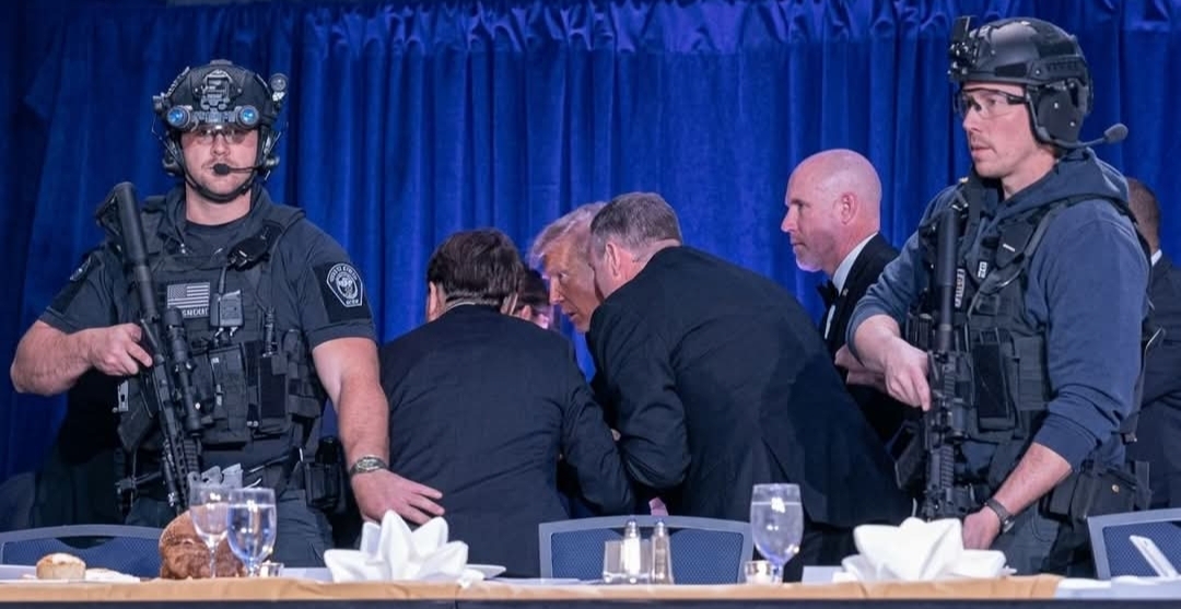 تم إجلاء ترامب والسيدة الأولى ميلانيا فوراً من القاعة. وفي مؤتمر صحفي لاحق، وصف ترامب المهاجم بأنه “شخص مريض”، مشيداً بشجاعة رجال الأمن الذين تصدوا له من مسافة قريبة جداً حوالي 50 ياردة من نقطة التفتيش.