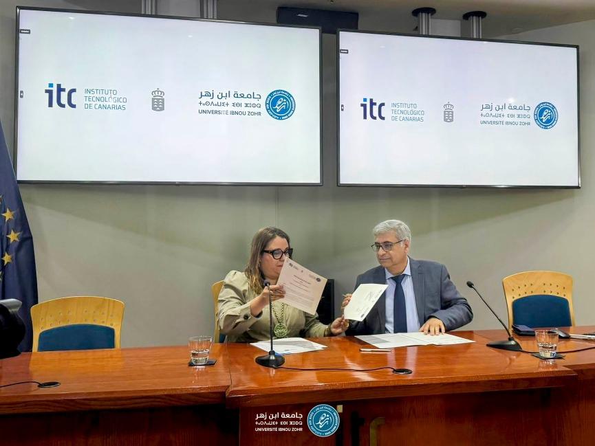 وقد تم توقيع هذه الاتفاقية من طرف السيد نبيل حمينة، رئيس جامعة ابن زهر، والسيدة غويارمينا إليسا بينيا غارسيا، المديرة العامة المنتدبة للمعهد التكنولوجي لجزر الكناري، حيث يشكل هذا الإطار التعاقدي أرضية لتطوير تعاون علمي وتكنولوجي مبني على استثمار الإمكانات المتاحة لدى الطرفين.